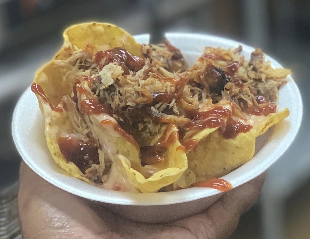 Great food!!! Collard greens were delicious with that hit of spicy. Mac n cheese so good! Candied yams were awesome. Nachos with the Bbq pork delicious!! Corn bread was the best I've had in awhile!! Don't discount this place just because its in a gas station. This Lady cooks her heart out!!